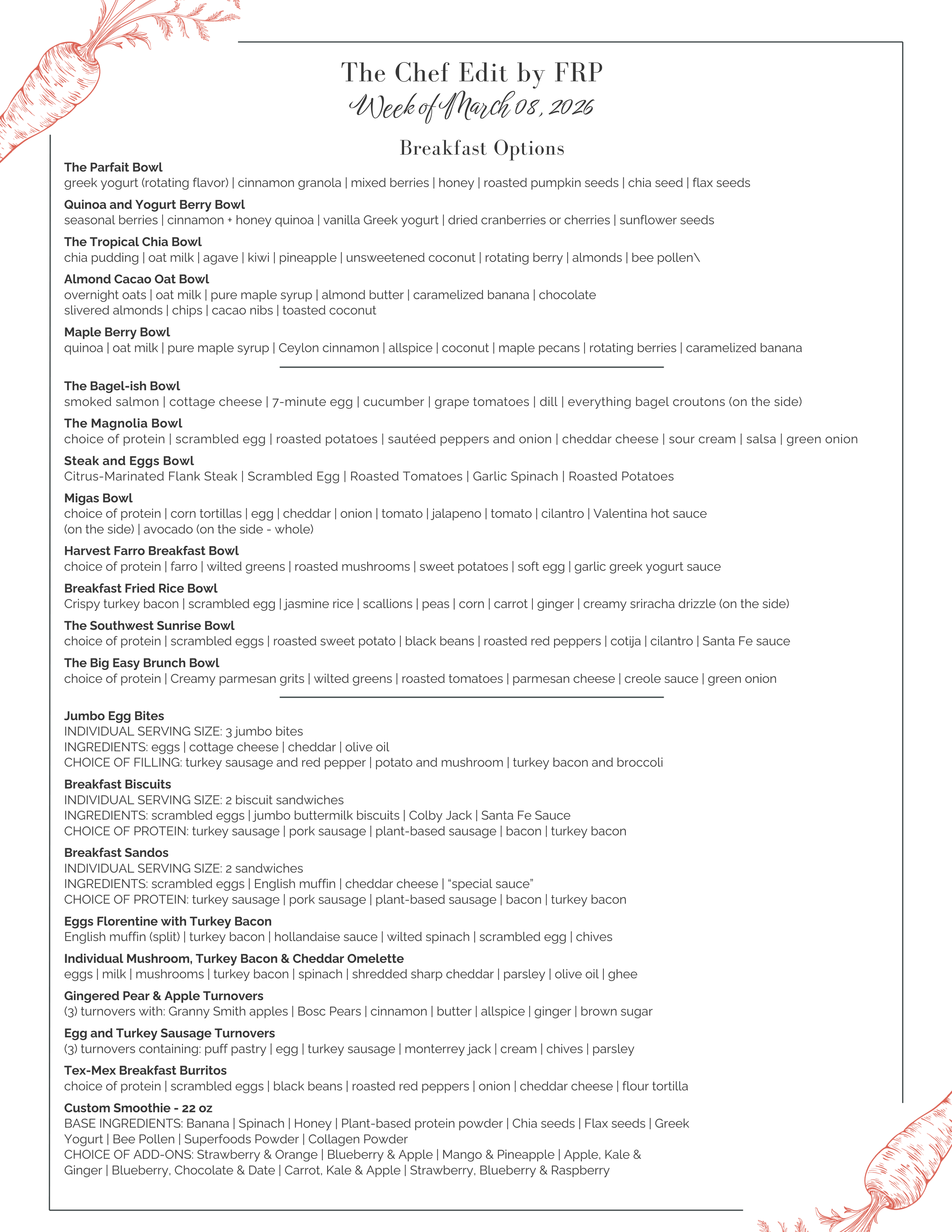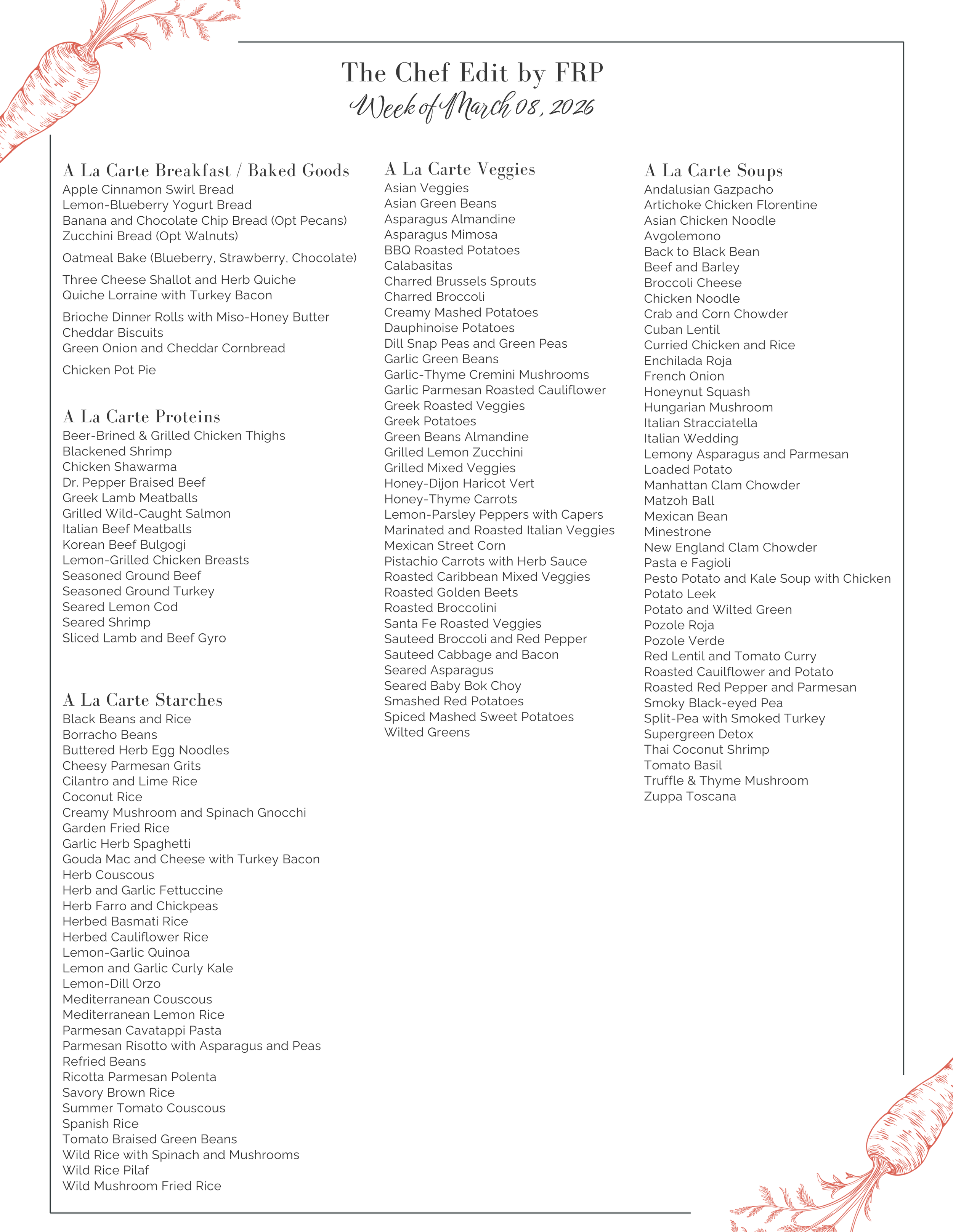 The Chef’s Edit: Weekly Menu Back to Store for 03.08.26 Options for Week of 03.08.26 — printable menus below — Print Menus